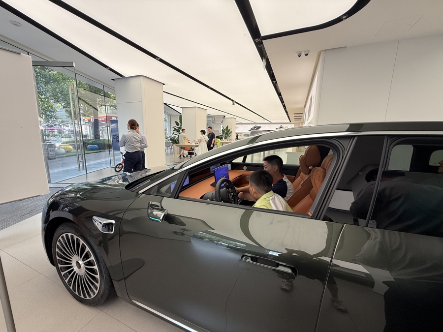 今年国庆期间迎来汽车市场密集投放期,40多个品牌都推出了新车。在位于静安大宁国际广场的鸿蒙智行体验中心,展厅里的车几乎都是刚上市的新车,尚界H5、问界M7、享道ST9、智界R7等展车前都有消费者仔细问询。