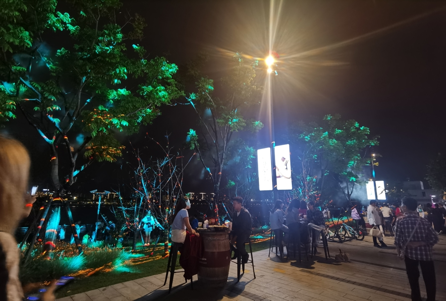 位于三楼一角的品庐粤菜馆压根没想到,几步路外的观景平台竟然成了光影节热门打卡点,直接让他们今年国庆假期的营业额翻倍,将近晚上十点还有客人用餐。