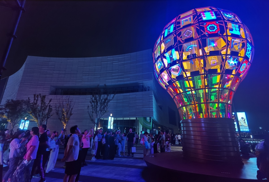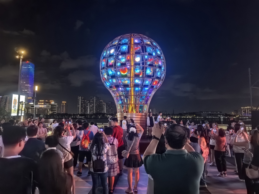 再次回到徐汇西岸,7米高的“亚”字牌“大灯泡”令人印象深刻,80块LED显示屏灵活变换图案、播放动画,不仅拍照出片,还能跟游客互动,收获众多粉丝。