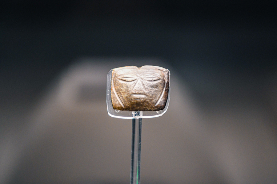 大汶口文化人面纹玉饰。