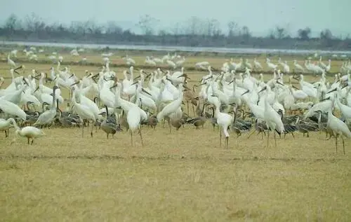 近年来,黄河三角洲成为白鹤重要的越冬地,2023年这里聚集了600多只白鹤。于秀波团队用数据证明了白鹤在鄱阳湖分布的新变化,即白鹤在从自然生境向人工生境转移。